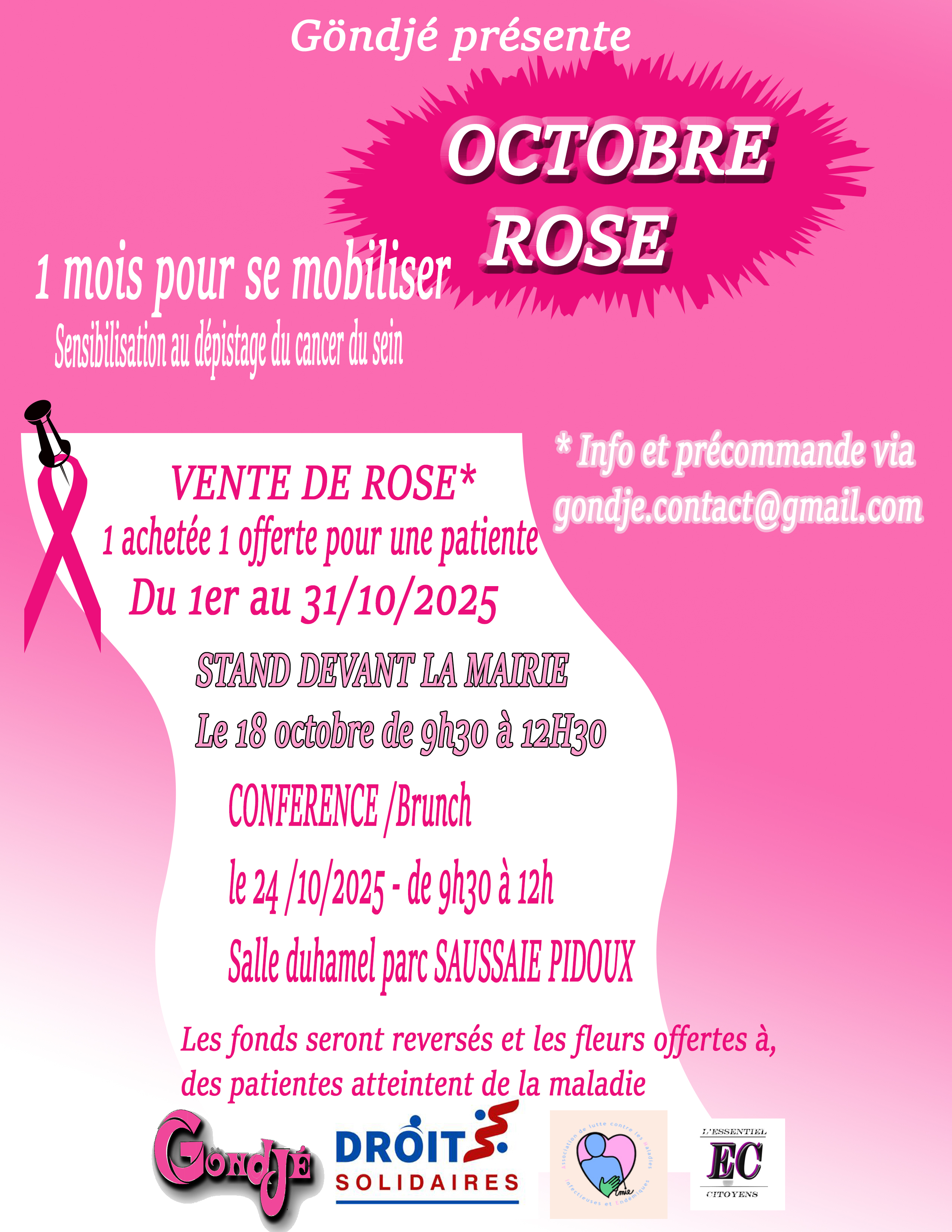 Dans le cadre d’Octobre Rose, mois de sensibilisation au dépistage du cancer du sein, l’association Göndjé animera un stand de vente de roses.