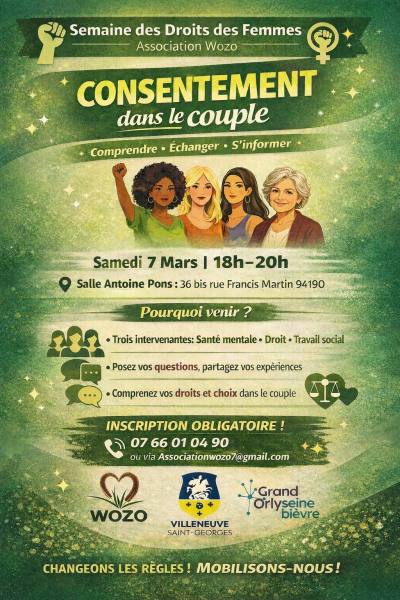 Trois intervenantes en santé mentale, droit et travail social seront présentes pour une soirée d'échange sur le consentement dans le couple, organisée par l'association WOZO. Posez vos questions, partagez vos expériences, comprenez vos droits et choix dans le couple.