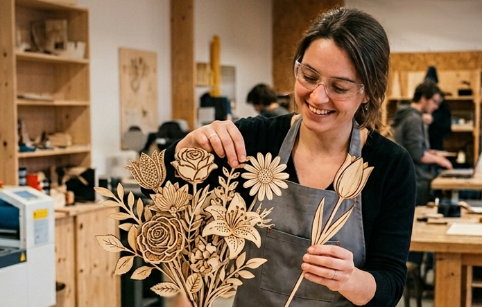 A l’aide de la découpeuse laser du Fablab venez réaliser votre propre bouquet de fleurs en bois et décorez-le afin de l’offrir à la plus belle des mamans !
