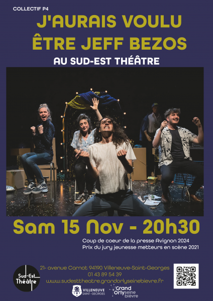 Dans un tourbillon satirique et festif, le Collectif P4 s’attaque à Jeff Bezos et à son empire Amazon. À travers une farce grinçante et décalée, loin de toute morale, le spectacle fait rire et réfléchir, à l’heure où la technologie part à la conquête de nos âmes.