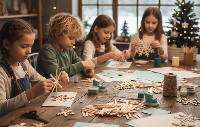 Fabrication de flocons en bâtonnets de bois et en papier.