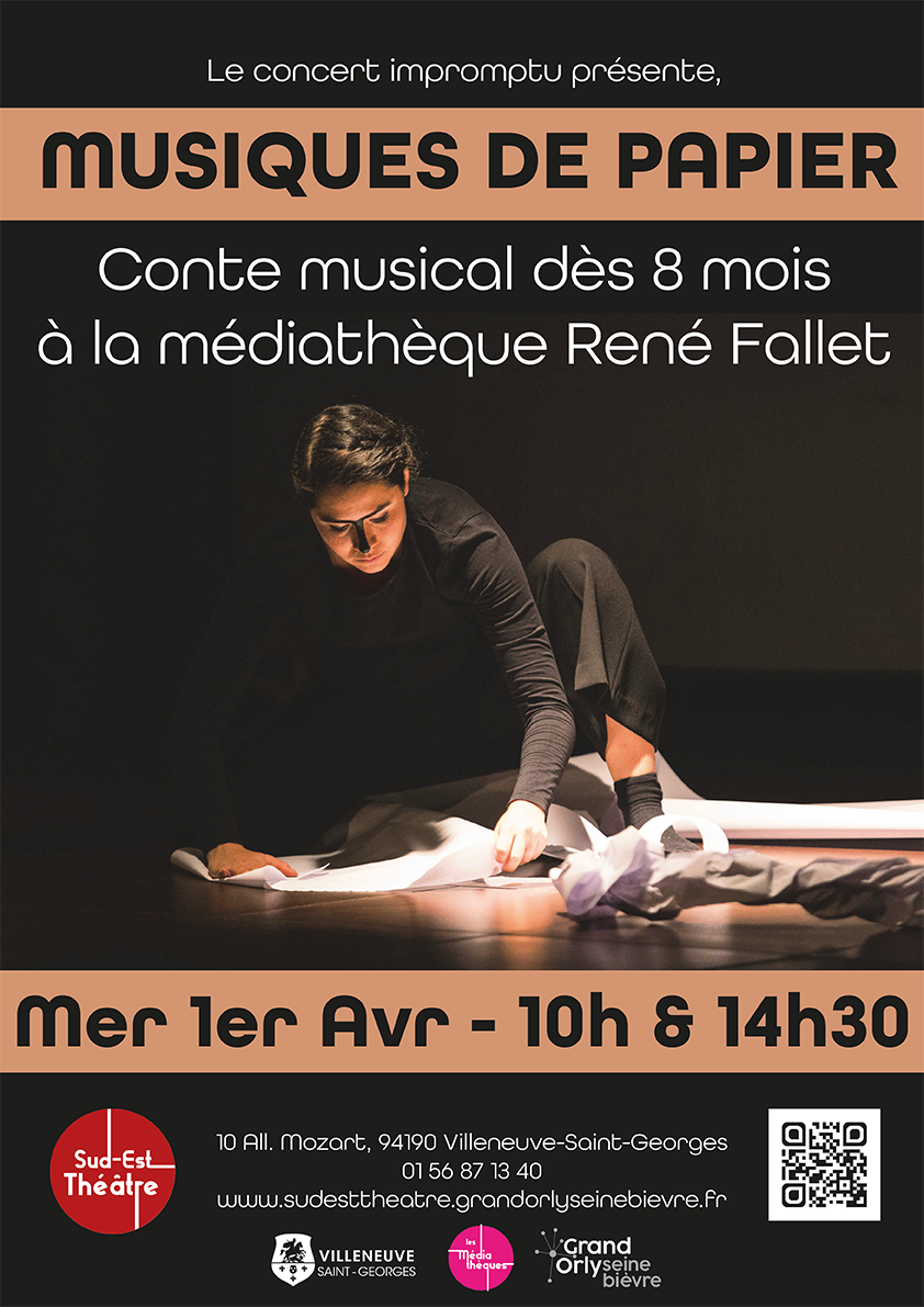 Musiques de papier est une immersion pour petits et grands où tout devient matière sonore et visuelle, prétexte au jeu. Le papier déchiré, frotté ou froisse devient source de musique et dialogue avec les corps et les instruments à vent - flûte, hautbois, clarinette, du Concert impromptu. Le papier donne aussi vie à un oiseau dont on suit le voyage au grès des matières et des sons.